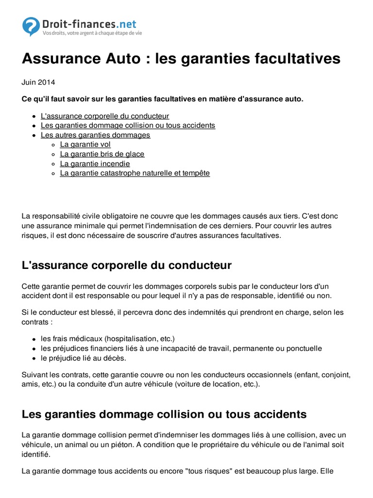 Assurance Auto Les Garanties Facultatives 1269 N4liws Assurance