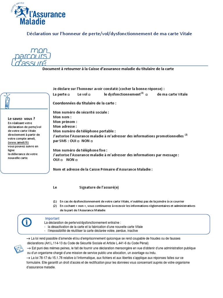 Declaration Perte Carte Vitale Assurance Maladie Assurance