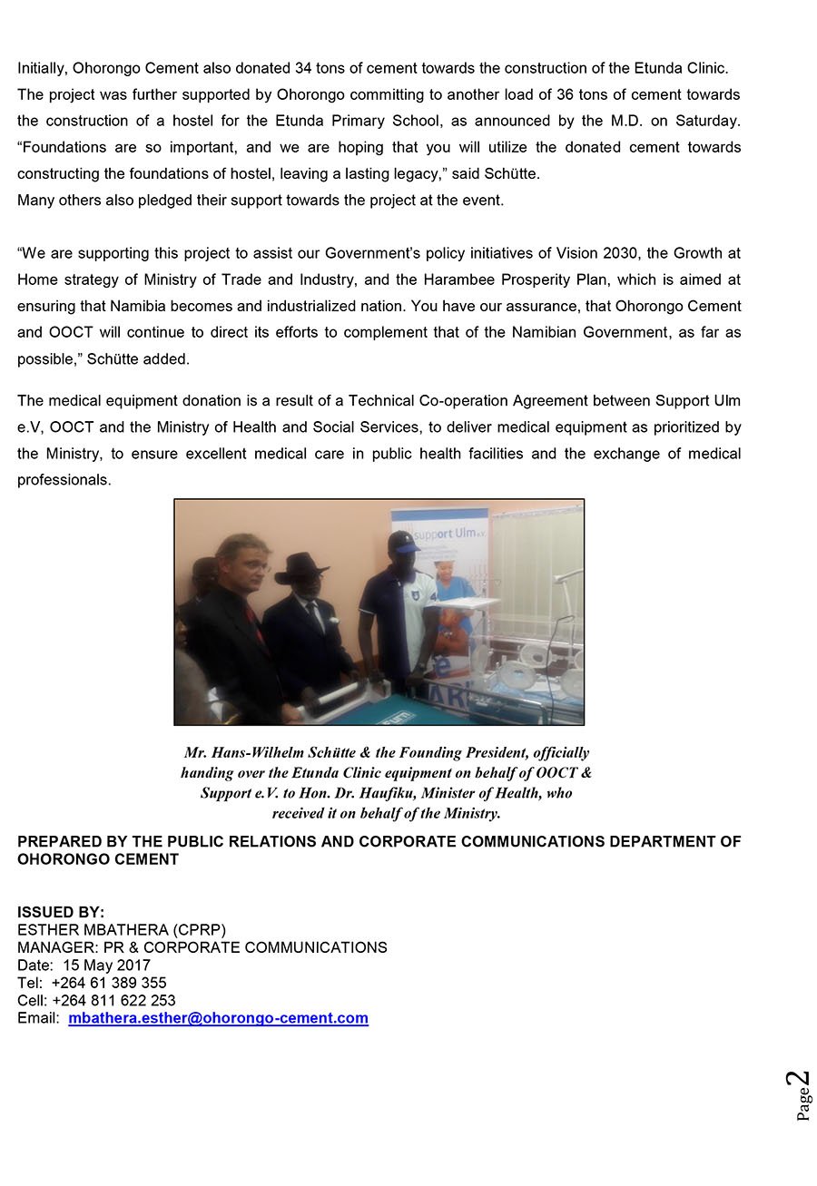 Samnujoma Foundation On Twitter Ohorongo Cement Press Release