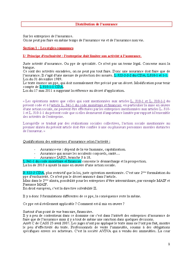 Distribution De L Assurance 1 Organisation Mutuelle Assurance