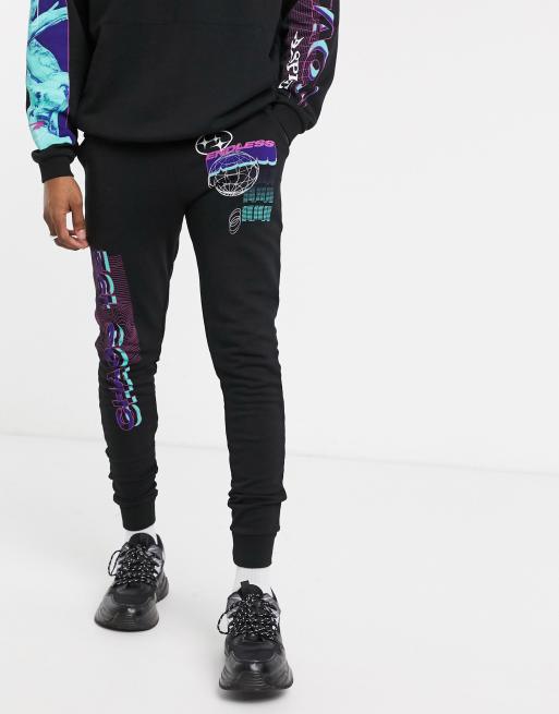 Asos Design Two Piece Skinny Sweatpants In Black With Multi Placement Print Asos